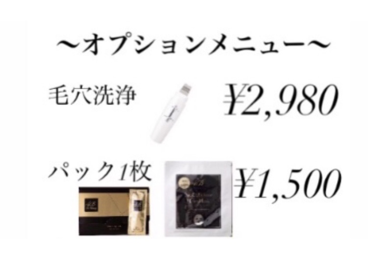 例えば、脱毛に毛穴ケア¥2980や、選べるパック¥1500を追加することで、より綺麗になれちゃいます!!